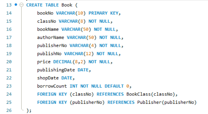 图书表(Book):存储图书详细信息,关联分类表与出版社表