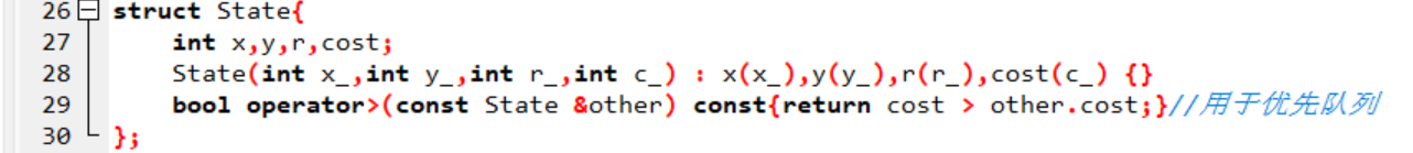 该部分是状态结构体,并且定义了优先队列按最小堆来实现