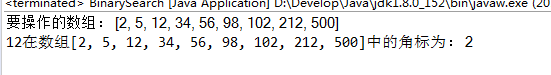 System.out.println(targetElement + "在数组" + Arrays.toString(array) + "中的角标为: " + result);