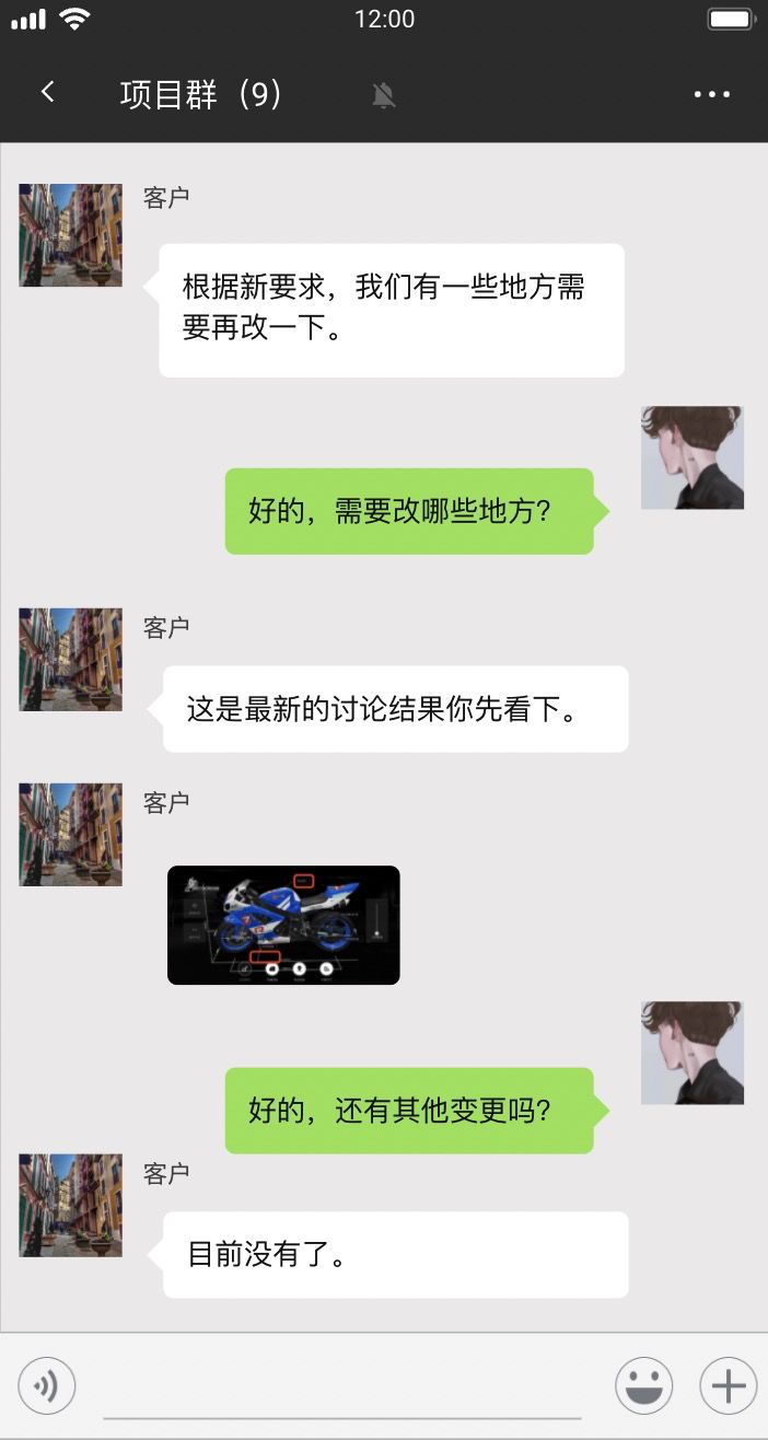 客户:你这次发的设计图挺好的,但是我觉得还有一些地方可以修改,比如:......