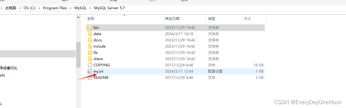 在MySQL 的安装目录下添加my.ini文件,同时添加空的data文件