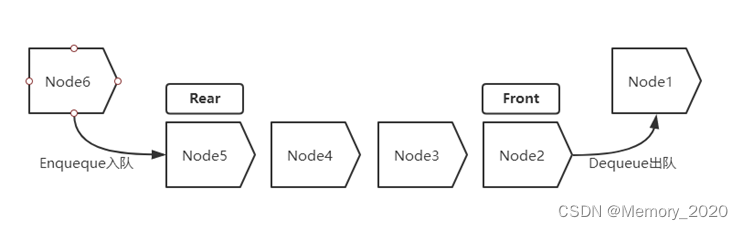- 主要操作:入队(EnQueue)与出队(Dequeue)