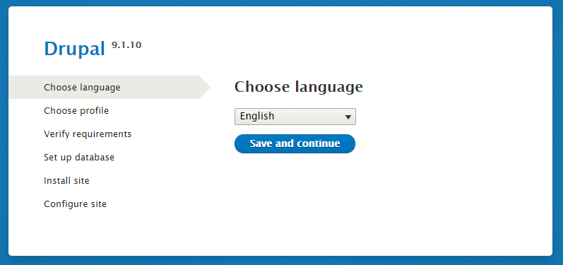 Choose a language and click Save and continue.
