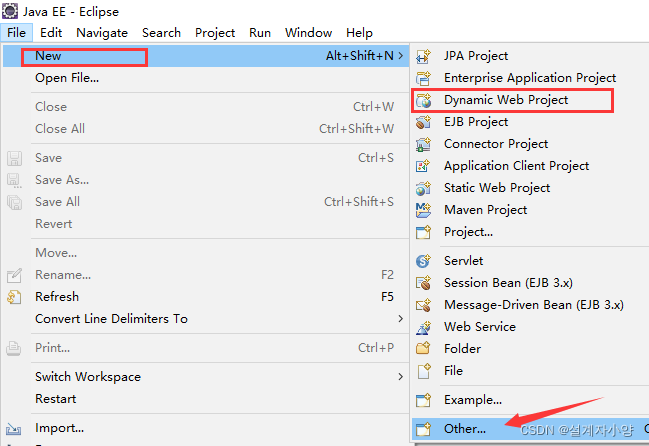 1、打开eclipse,新建项目:选择 Dynamic Web Project,若没有该选项,则选择Other