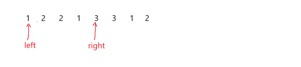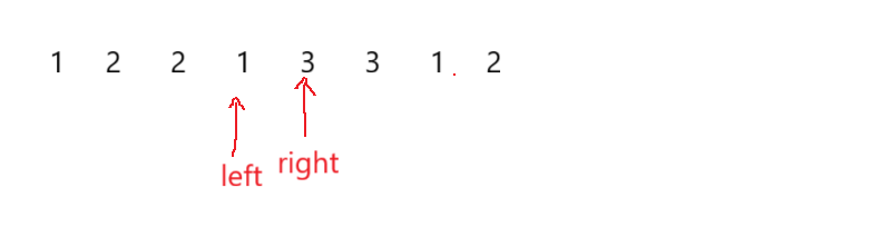 现在,就要移动 left 了,应该怎么移动呢?答案是一直移动直到 kinds == 2 时停止,此时 left 位置是: