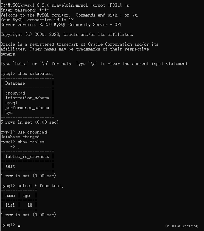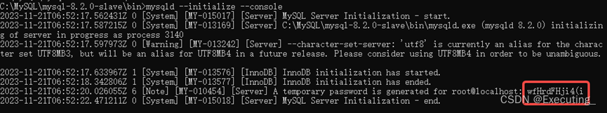 管理员打开cmd,切换到C:\MySQL\mysql-8.2.0-slave\bin目录