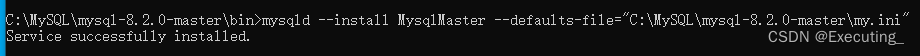 mysqld --install MysqlMaster --defaults-file="C:\MySQL\mysql-8.2.0-master\my.ini"