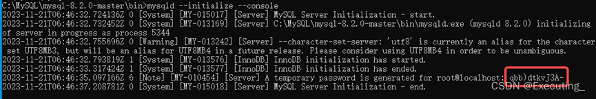 管理员打开cmd,切换到C:\MySQL\mysql-8.2.0-master\bin目录