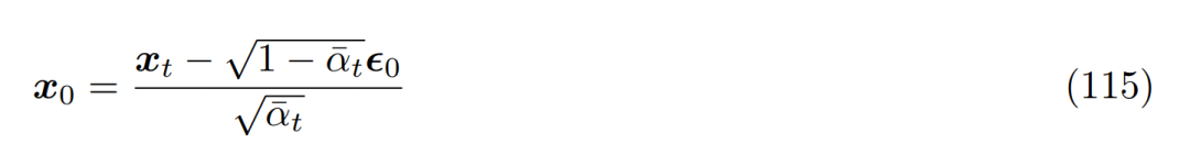 将其带入之前推导出的真实去噪转换均值 µ_q(x_t, x_0),则可以重新推导如下: