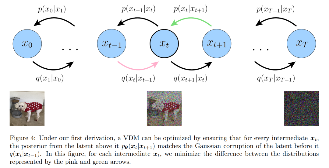 正如之前证明的,一个变分扩散模型可以简单地通过学习神经网络来训练,以从任意噪声版本 x_t 及其时间索引 t 中预测原始自然图像 x_0。但是,x_0 有两个等价的参数化,使得可以对 VDM 展开两种进一步的解释。
