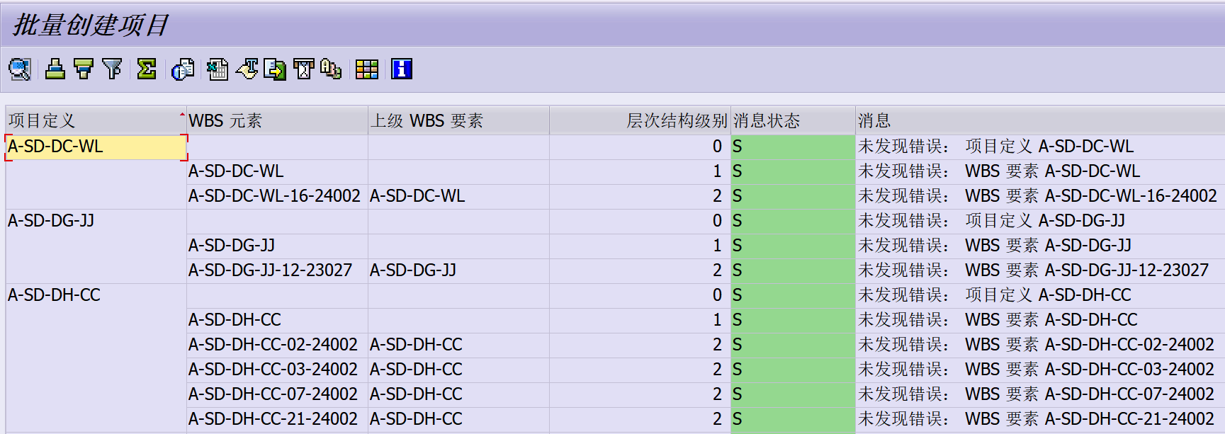 解决方法:针对EXCEL模板项目定义/WBS元素重新排序,升序即解决该问题