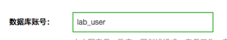 1)数据库账号:请根据 输入框 下端的 命名规则 ,输入 数据库账号名称,例如:lab_user 。