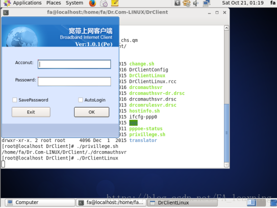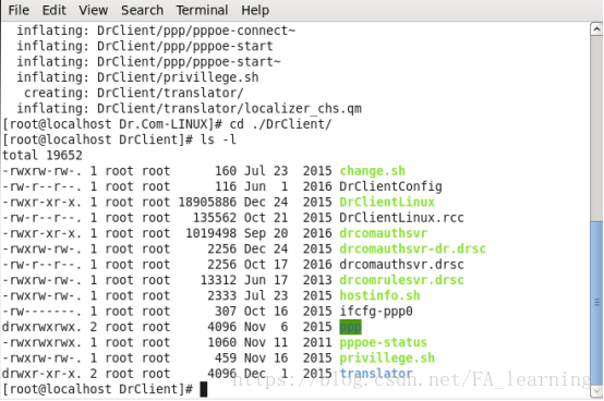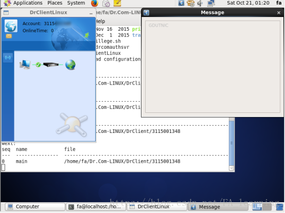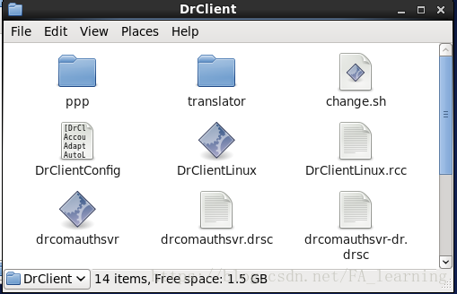 2、以后连接校园网直接运行DrClientLinux就可以了,不过得用root身份运行,希望以普通账户运行的可以更改权限,在此不细说。