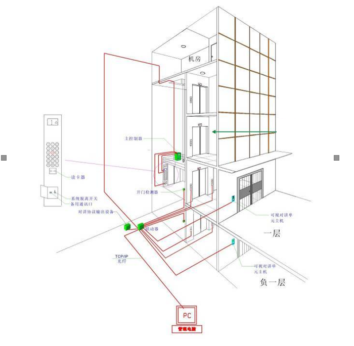 对于消防状态或系统故障时:IC卡梯控系统可以自动退出电梯楼层管制,恢复操纵箱操作。
