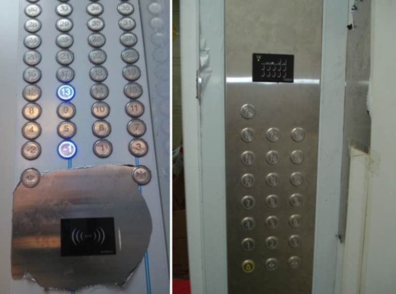 2、轿厢内读头安装固定,在满足安装条件下采用专用设备开孔嵌入式安装,达到一体化效果