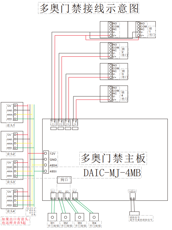 - 通信接口:1 个 RS485(连接读卡器 / 扩展器)+ 1 个 TCP(对接管理平台)。