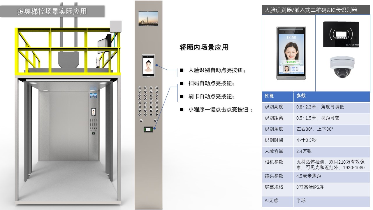 | 乘梯管理 | 无梯控,存在安全隐患 | 刷卡/扫码/人脸识别自动点亮楼层 |