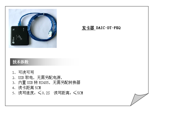 | 发卡器 | DAIC-SK-FKQ | USB桌面型,支持卡片发行及权限管理。 |