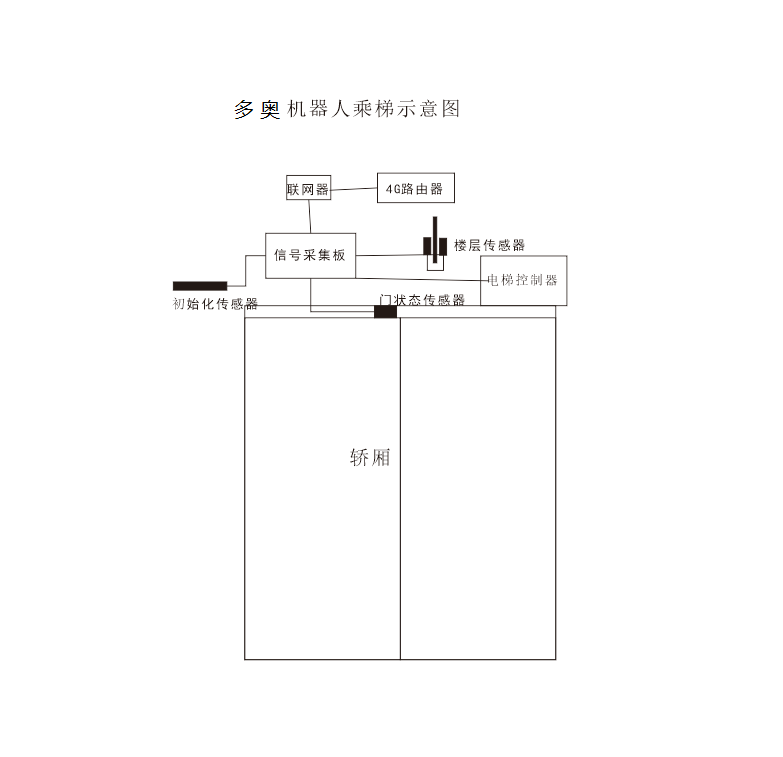 (此部分为示意图描述,实际安装需根据电梯型号、现场环境及具体方案绘制详细图纸或找多奥)