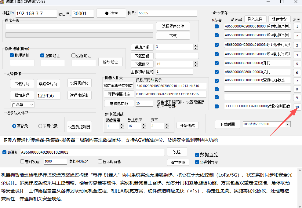 | 梯控主板通信接口 | RS485, TCP/IP, Modbus (RTU/TCP),支持多种主流工业通信协议,确保与机器人及上位机的稳定通信。 |