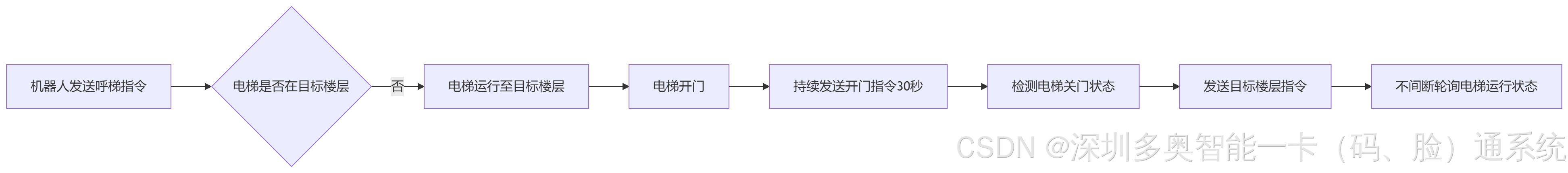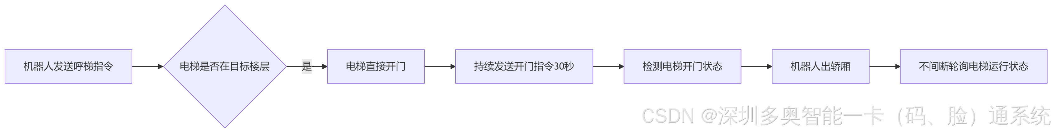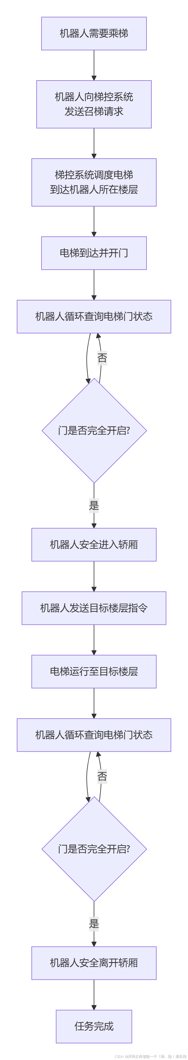 - 梯控系统与机器人交互的完整流程,包括呼梯、门控、状态查询等关键环节的时序逻辑