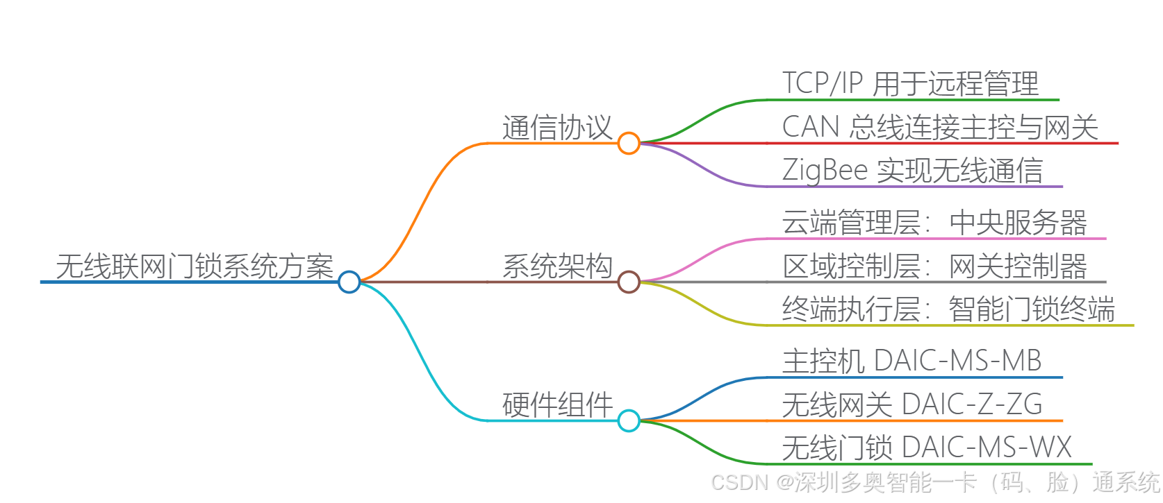 | 4. 终端层 | 无线联网门锁 DAIC-MS-WX | 执行开锁动作、本地识别、脱机运行 |