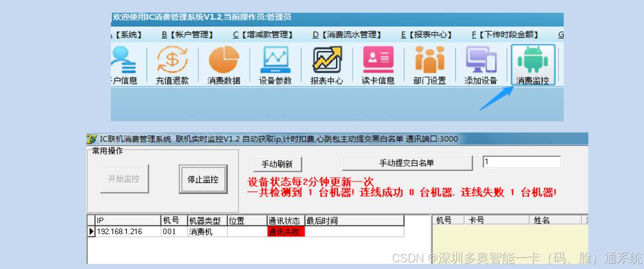 上位机通讯不上指消费机、门禁控制器等设备无法与中央软件(如管理服务器)通信,影响数据同步和控制。