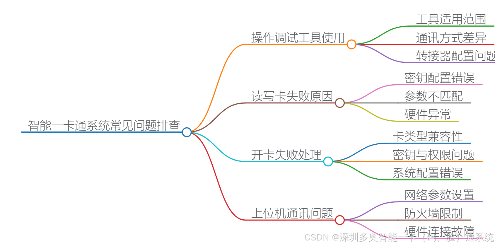 智能一卡通系统(包括门禁、梯控、闸机、水控、电控、消费机、访客机、考勤机、在线巡更等)在日常运行中,可能出现操作调试工具使用不当、读写卡失败、开卡失败或上位机通讯不上等问题。这些问题通常源于软件配置、硬件故障或参数设置错误。以下我将基于行业最佳实践和可靠知识,为您提供结构化排查方法。回答分为四个部分:操作调试工具的用途、读写卡失败原因及解决、开卡失败原因及解决、上位机通讯不上原因及解决。每个部分均包含常见原因和分步解决方案,确保您能逐步定位并修复问题。