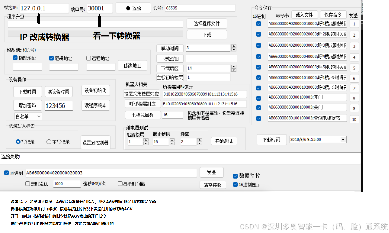 | 门禁系统(含梯控) | 门禁调试工具 | RS-485、TCP/IP、WIFI | 梯控需区分普通版与机器人乘梯专用版 |