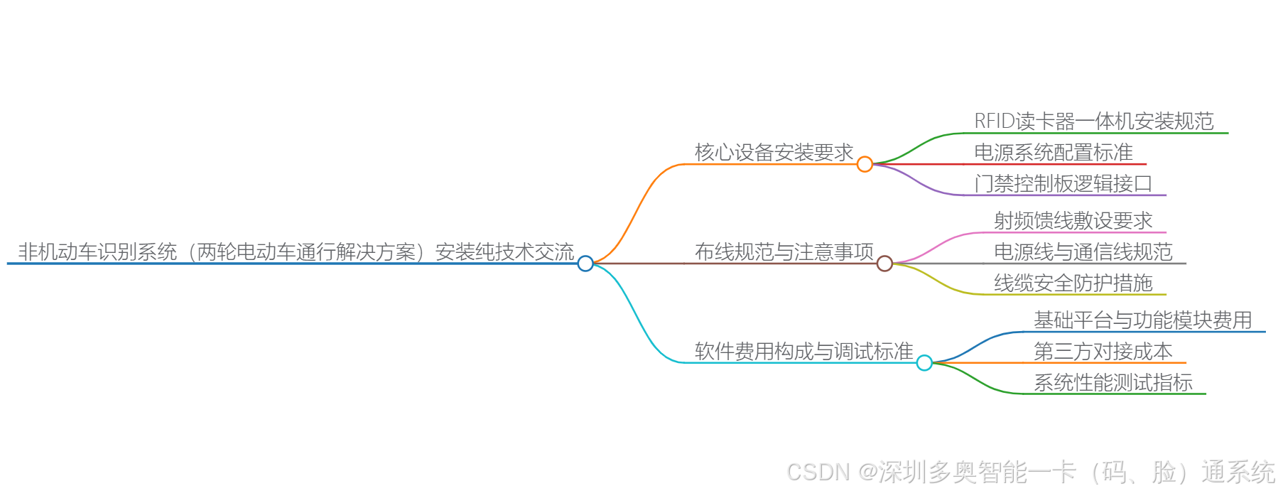 | 3 | 线缆敷设 | 按布线规范敷设电源线、通讯线、控制线;做好线缆标识(如 “读卡器电源”“闸机控制”) | 施工方 | 线缆接头做防水处理(户外),使用防水胶带包裹 |
