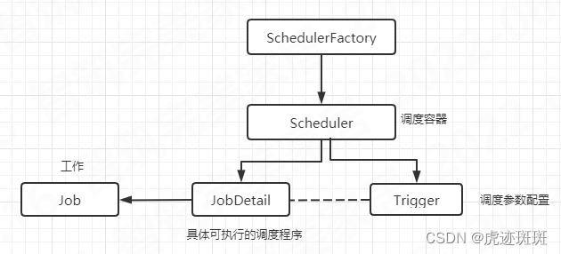 JobDetail表示一个具体的可执行的调度程序,Job是这个可执行程调度程序所要执行的内容,另外JobDetail还包含了这个任务调度的方案和策略。