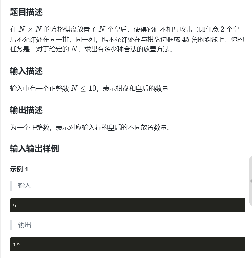 第一步:根据题目设定所需变量,我们需要一个int类型的N用于表示棋盘和皇后的数量,一个int类型的a[i]数组表示第i行的第j列存放着皇后,需要一个int类型的res记录结果。