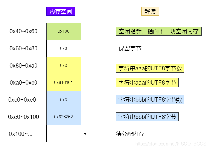 0x80~0xc0:对象分配的起始地址。这里分配了字符串aaa