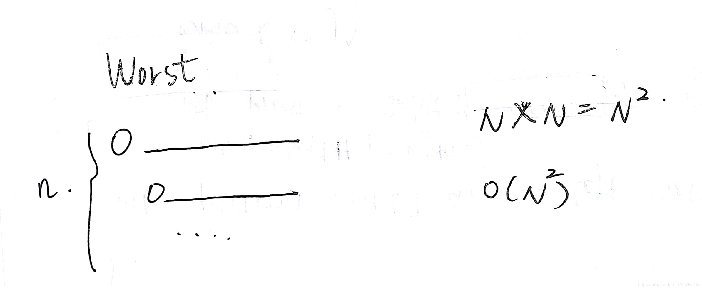 快速排序的最坏情况:每次选取的主元都将数组a分为1个元素+N-1个元素两份·