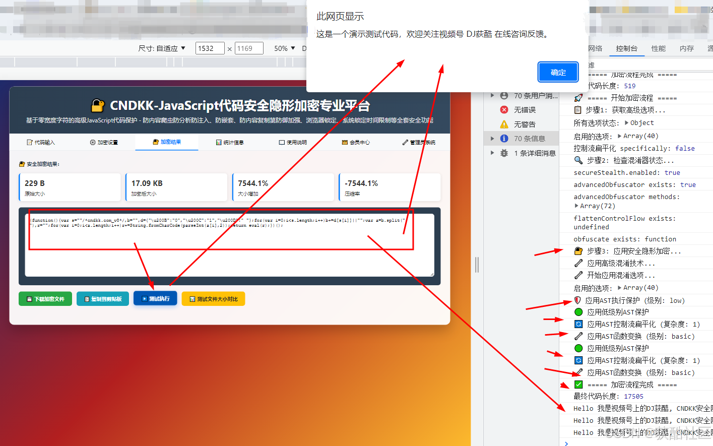 console.log("Hello 我是视频号上的DJ荻酷, CNDKK安全隐形加密系统为您保驾护航!");