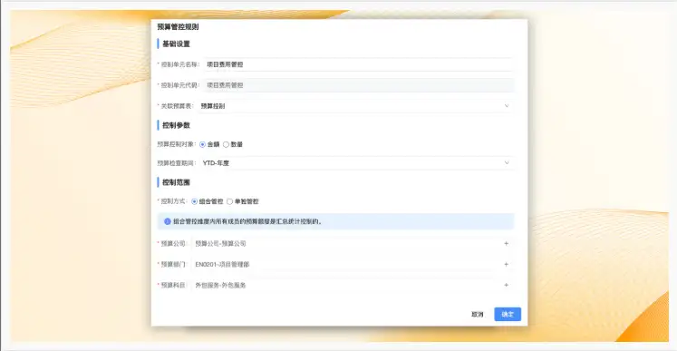- 支持累计控制、汇总控制、跨年结转预算、白名单等各种控制场景。
