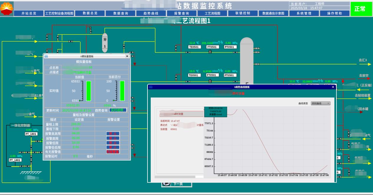 - 中心站数据监控系统可以对各场站和监控点的流程、工艺参数、报警等实时监控。