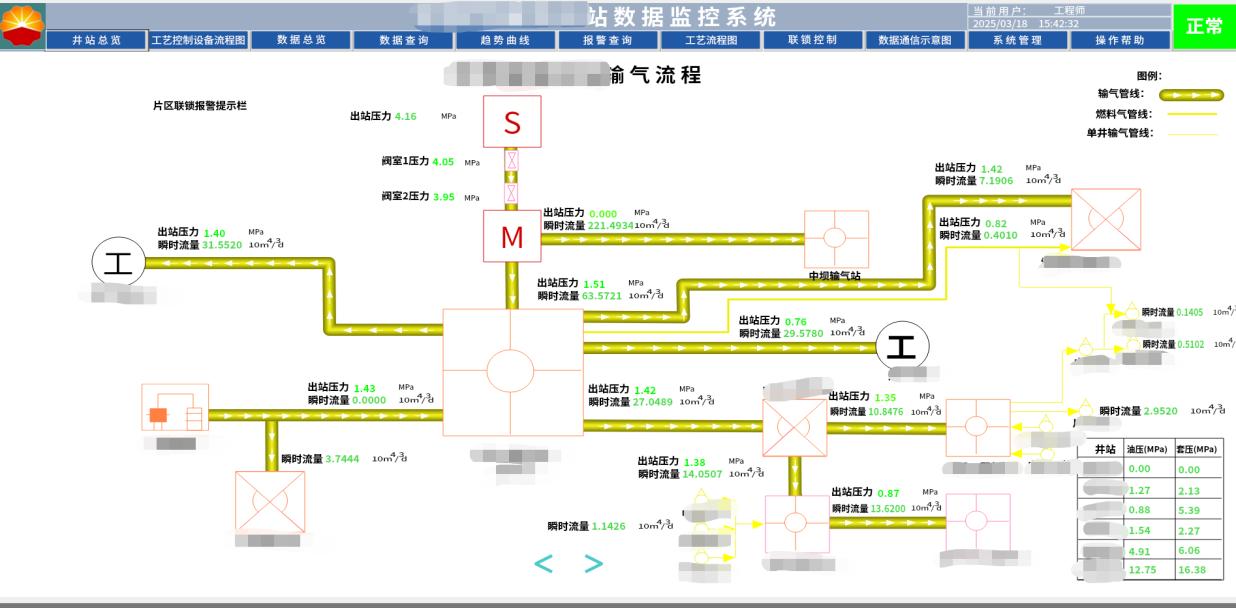 - 各井站系统生产过程中的压力、差压、温度、流量等一系列生产数据的采集、处理、存储、检索、远程传送的整体系统数据进行采集与存储,并汇总到上一级平台。