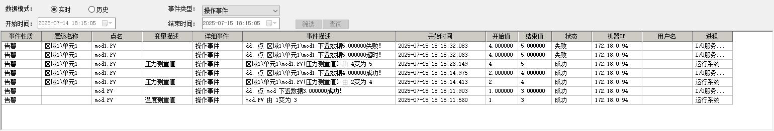 事件服务采用独立存储机制,将事件数据独立管理,与运行日志分离,提升查询效率。例如,用户只需在事件界面选择所需查看的事件类型,或是输入描述关键词如“泵A故障”,即可快速找到相关记录。