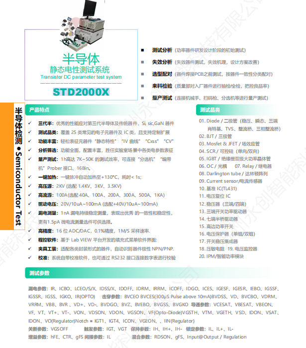 STD2000X 被定义为一套完整的“半导体静态电性测试系统”,其核心定位在于: