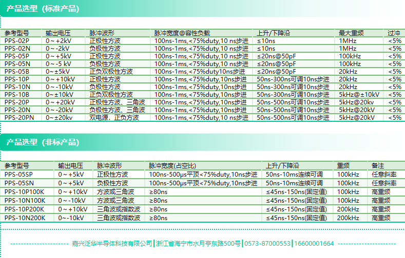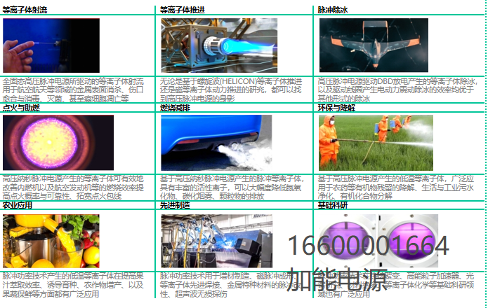 加能电源-脉冲电源系列产品。集脉冲功率技术方面资深技术专家团队,致力于脉冲电源及脉冲功率技术研究与应用。在基于MOSFET/IGBT及第三代半导体器件的脉冲电源方面有20余年的研究开发经验。公司的脉冲电源产品电压幅值从数kV到百kV级,脉冲上升时间从ps级到ms级,脉冲平顶宽度从0ns到DC,脉冲频率可达MHz,可匹配阻性、容性(pF到nF)和感性负载。脉冲的波形可以是方波、三角波、指数波等,脉冲的关键特征参数均可编程控制。