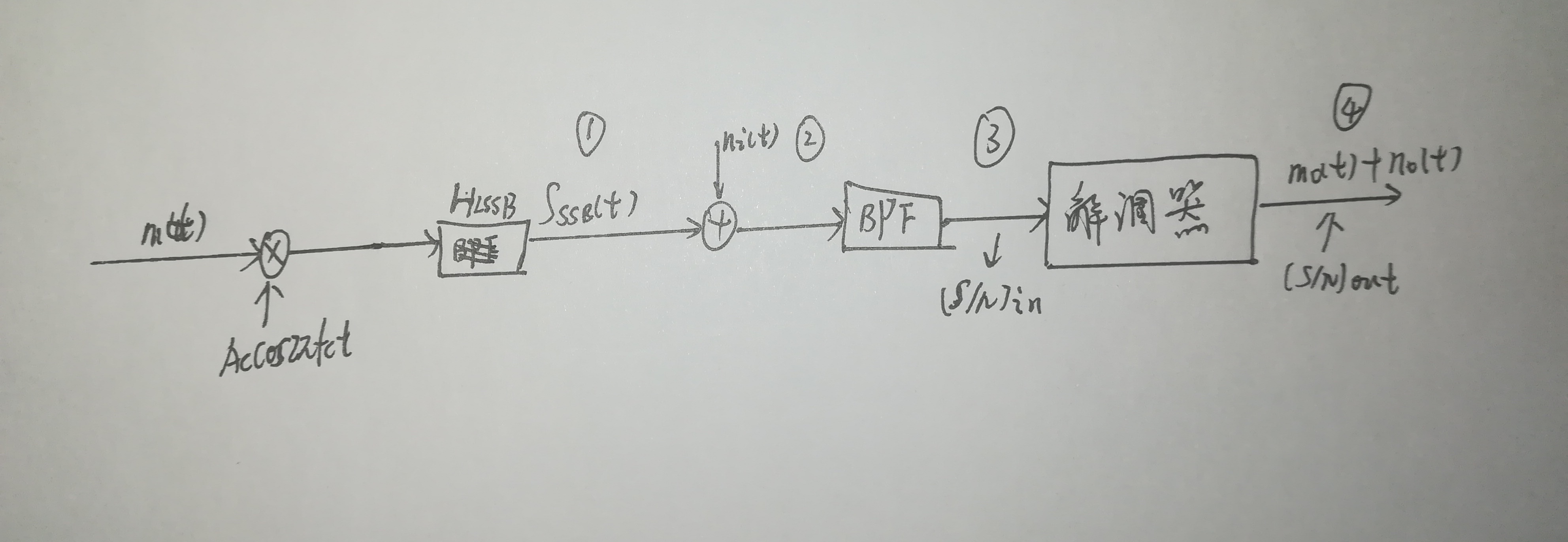 根据系统叠加性原理,在分析过程中可以将信号经过系统各部分和噪声经过系统各部分分开讨论计算。在使用MATLAB进行仿真时也采用分开处理的方式。根据理论学习噪声性能可以通过信噪比 ( S / N ) (S/N) (S/N) 表示。 ( S / N ) i (S/N)_i (S/N)i, ( S / N ) o (S/N)_o (S/N)o。分别表示经过解调步骤前后的信噪比。根据解调增益 G = ( S / N ) i ( S / N ) o G=\frac {(S/N)_i}{(S/N)_o} G=(S/N)o(S/N)i反应解调器对信噪比改善的能力。