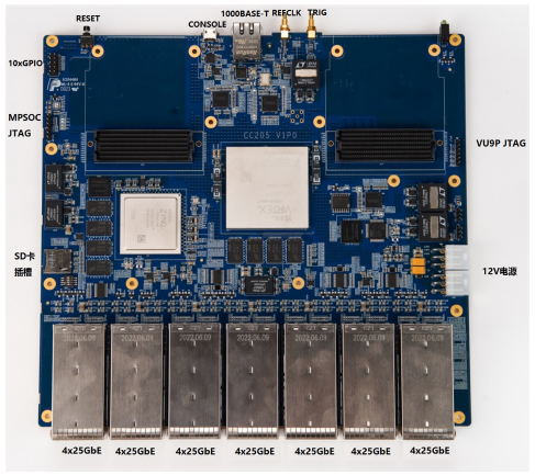 FPGA 采用1 片Xilinx 公司的XCVU9P-2FLGB2104I 芯片,这款芯片拥有逻辑单元CLB