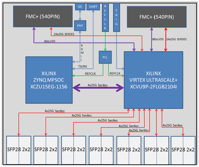 基于Xilinx Virtex Ultrascale Pluse XCVU9P 和MPSOC XCZU15EG