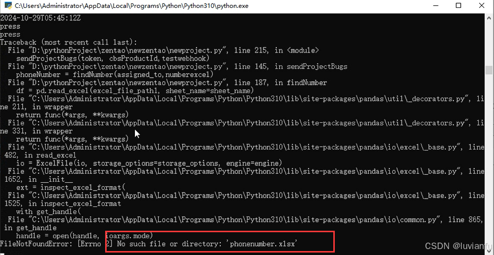 恢复原本的配置,执行,发现如下报错,原来是文件没找到