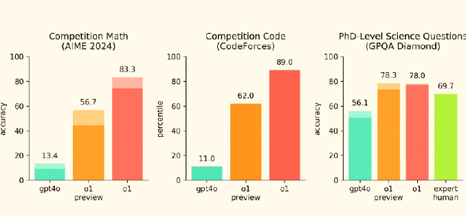 大模型o1在9月以预览版形式上线。特点在于形成类似人类思维的内部链条,提升专业问题回答准确性。据悉,升级后的o1 模型成为 ChatGPT 平台的核心功能,现在还可以分析图像,根据草图设计专业图纸。与预览版相比,更新后的 o1 响应速度更快,疑难问题的重大错误减少了 34%。OpenAI o1作为全新推出的推理模型,现已全面向ChatGPT Plus、Team和Pro用户开放。这一模型在性能上实现了显著提升,能够更快速地处理复杂任务,提供更为精准的推理结果。