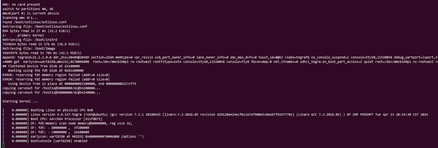 1,串口卡在串口enable,插上HDMI 开机画面在白色底的NVIDIA ,过一段时间后重启。