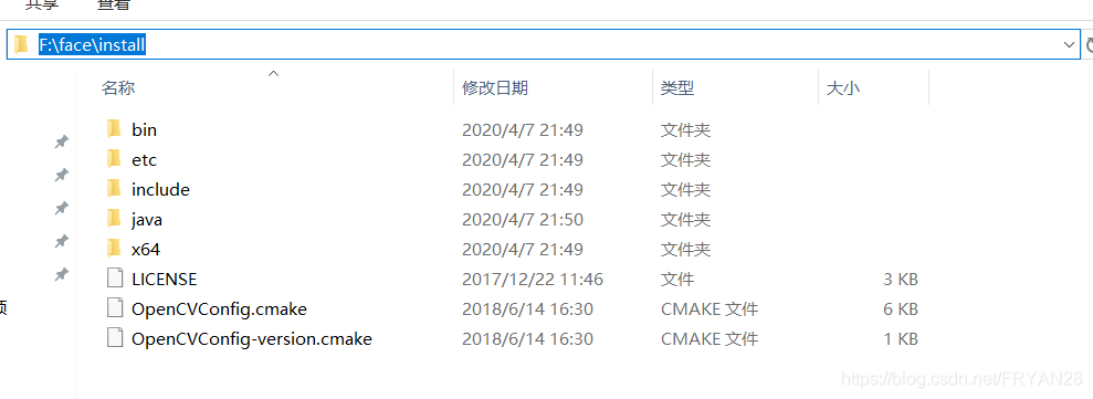 然后,我们去系统环境变量里边,添加一下路径,我的包在F盘,所以环境变量为 F:\face\install\x64\vc14\bin