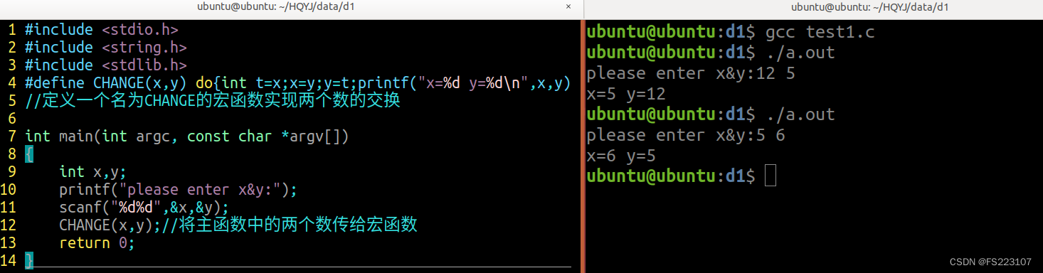 CHANGE(x,y);//将主函数中的两个数传给宏函数