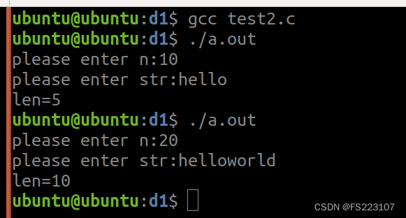 定义字符类型指针,指针指向n个连续堆区内存,输入,计算字符串长度